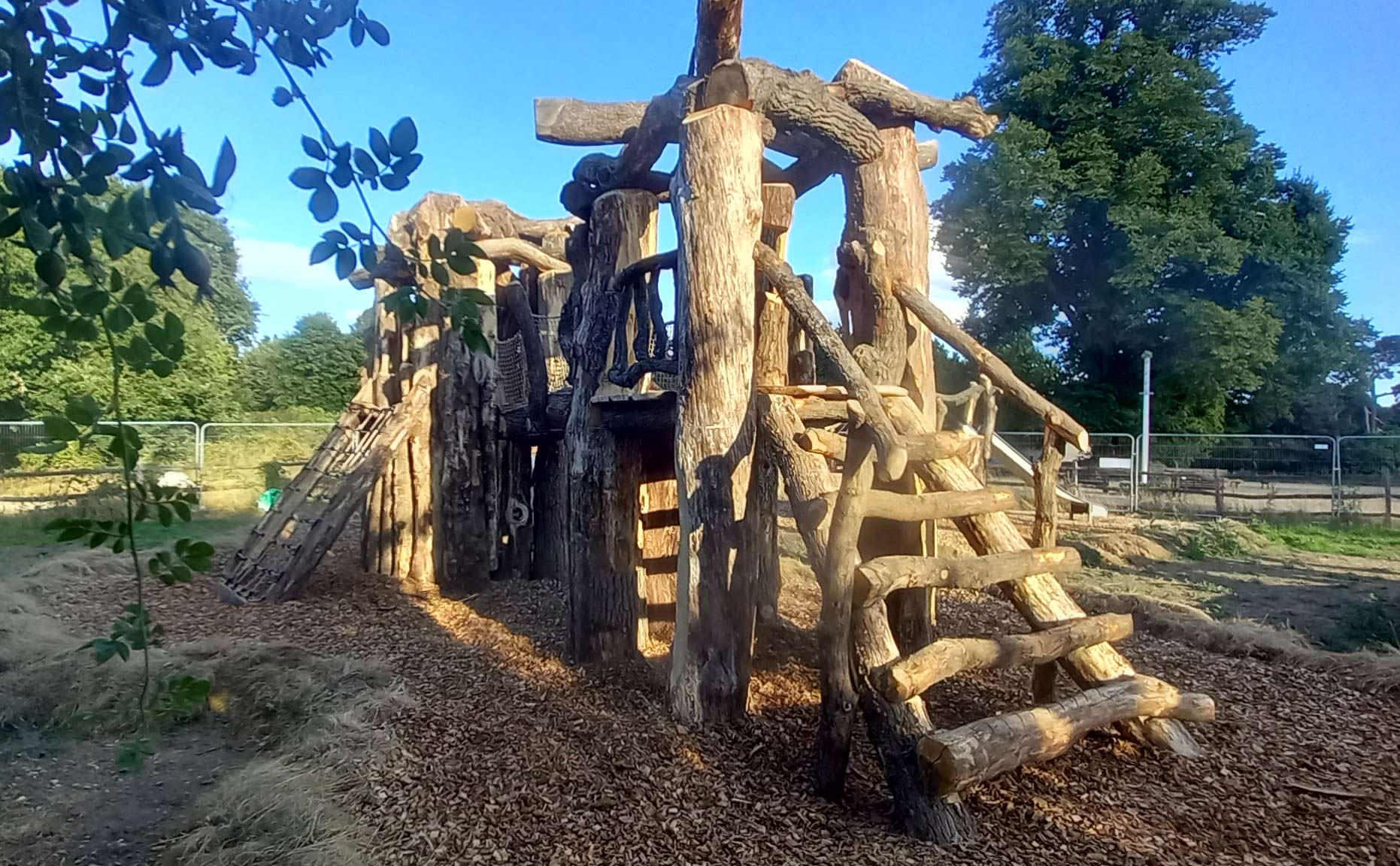 Made from spectacular oak tree branches, it's wild natural play up close to the school playground.
