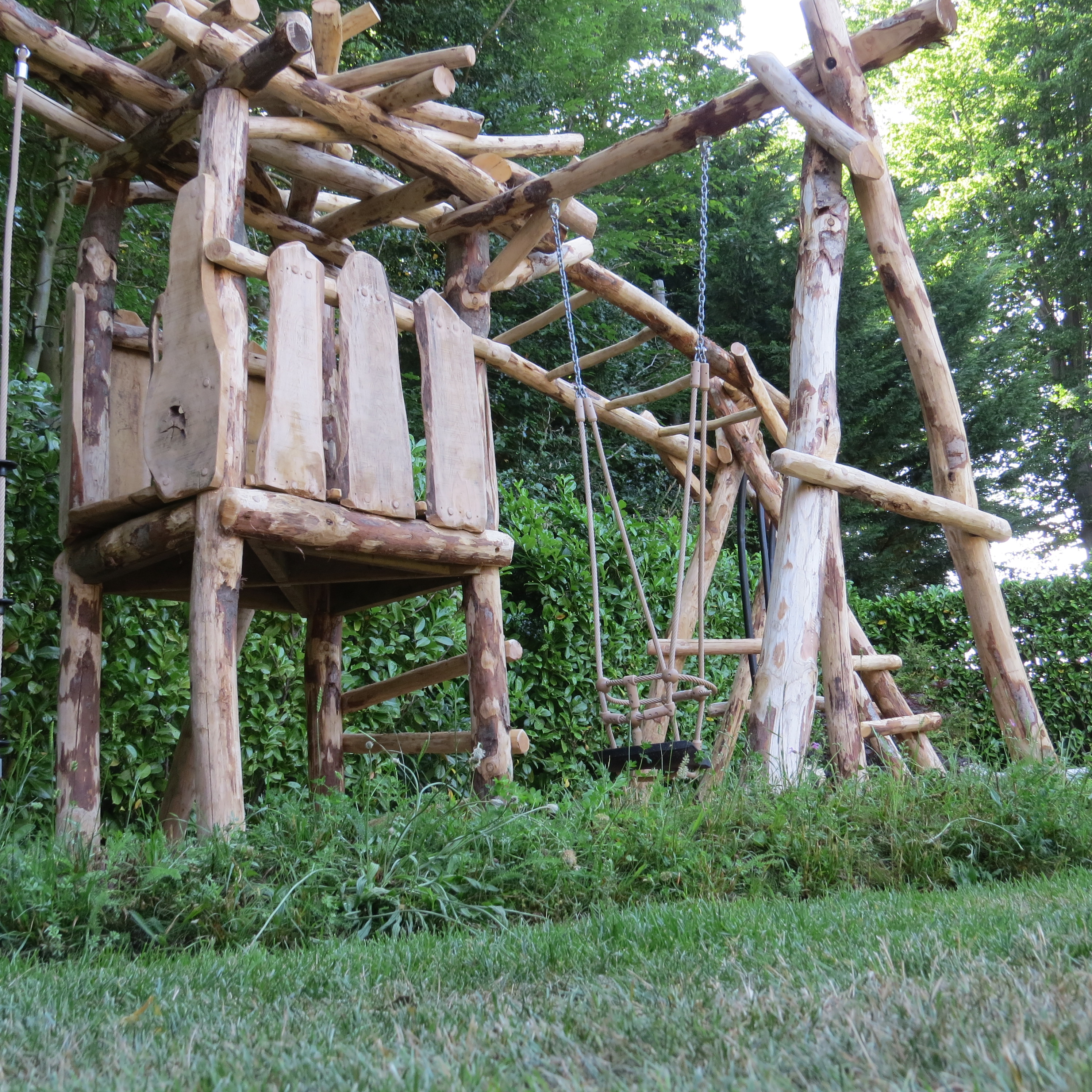 A handcrafted, chemical-free garden play space made from UK hardwoods and surrounded by wildflowers.